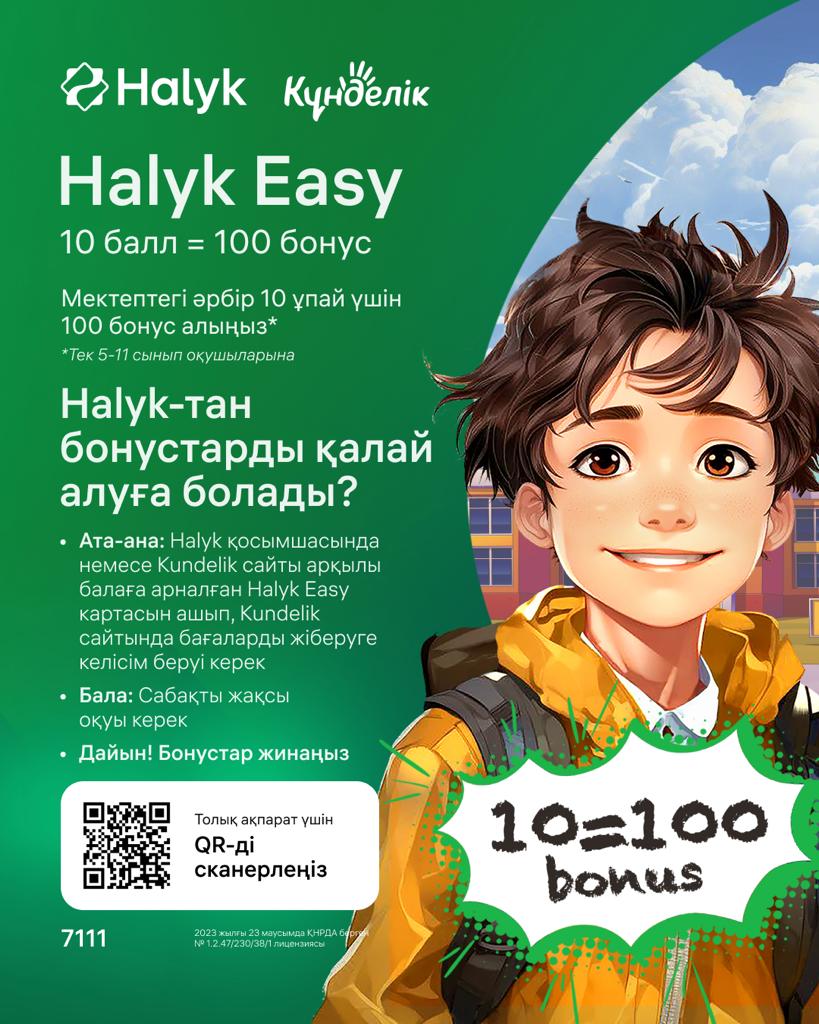 Для получения Бонусов ученику необходимо иметь карту Halyk Easy, а также быть участником системы Күнделік.