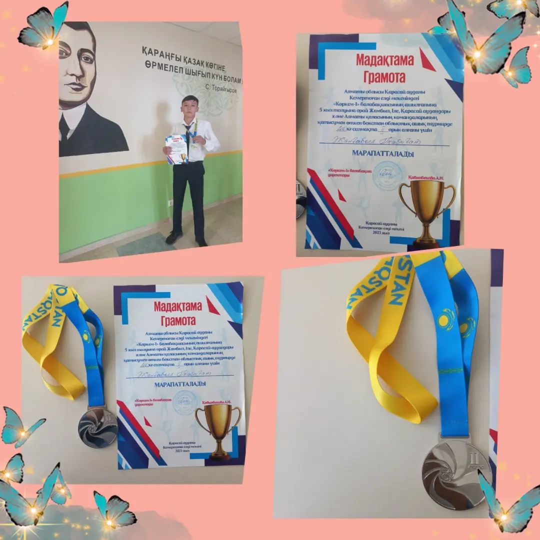 Алматы облысы, Қарасай ауданы, Кемертоған елді мекеніндегі "Көркем -1" балабақшасының ашылғанына 5жыл толуына орай, Жамбыл Іле, Қарасай және Алматы қаласының командаларының қатысуымен өткен бокстан облыстық ашық турнирде 46кг салмақты ІІ-ОРЫН алған үшін №210мектеп-лицей 8"Б"сынып оқушысы Жанғабыл Табиғат марапатталды. Құттықтаймыз. Биіктен көрінуіне тілектеспіз. Жеңісіміз көп болсын.