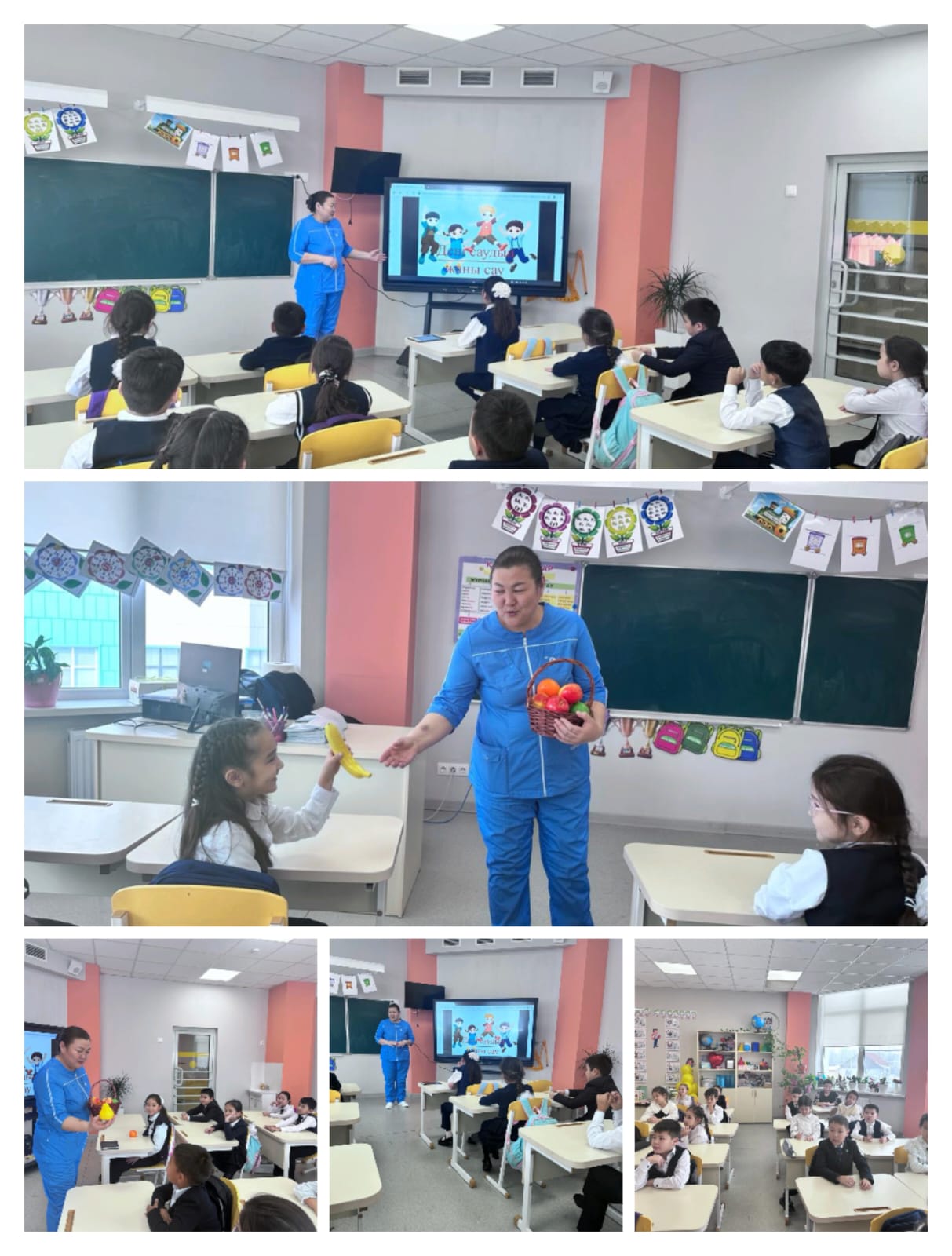 № 210 мектеп-лицейінде “Салауатты тамақтану мектебі” айлық акциясы аясында бастауыш сынып оқушыларының, дұрыс тамақтануын ұйымдастыру мақсатында 2 сыныптармен
