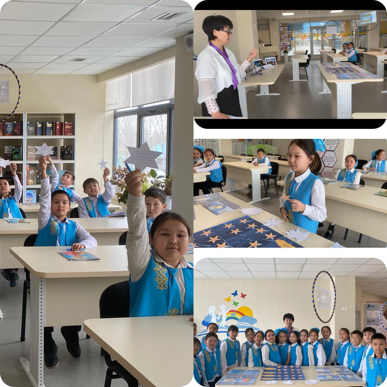 Қазақ ғарышкерлері туралы қызықты мәліметтер,ғарыштың тарихы,ғаламшарлар мен жұлдыздар жайлы жас оқырмандардың ой-өрісін дамыта отырып, білім ордасы – кітапхана мен кітап жайлы көбірек ақпарат беріп, көркем әдебиеттер оқуға қызықтыру мақсатында «Оқуға құштар мектеп» жобасы шеңберінде 4 сынып оқушыларымен * викториналық ойын ұйымдастырылды.Ойынға қатысушылар өте белсенді қатысып, нақты және қызықты жауаптар бере алды.