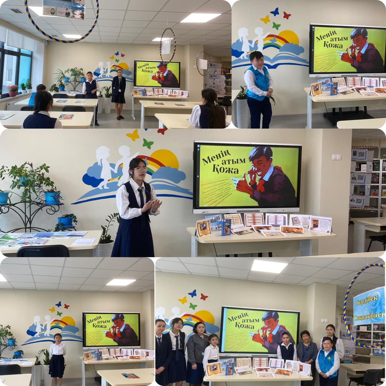 23 - сәуір Дүниежүзілік кітап күніне орай "Кітап - алтын қазына" тақырыбы шеңберінде оқыған кітаптары көрнекті балалар жазушысы Б.Соқпақбаевтың «Менің атым Қожа» повесін талқылай отырып сұқбаттасу шарасы ұйымдастырылды.