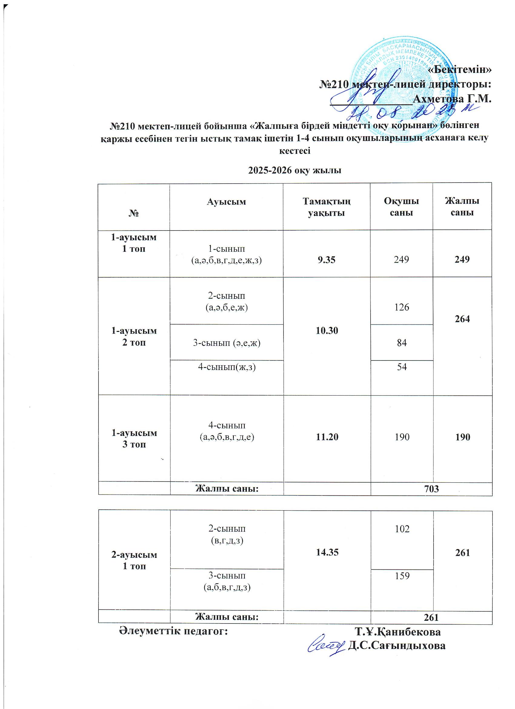 оқушылардың ыстық тамақ ішу кестесі » №210 мектеп-лицей