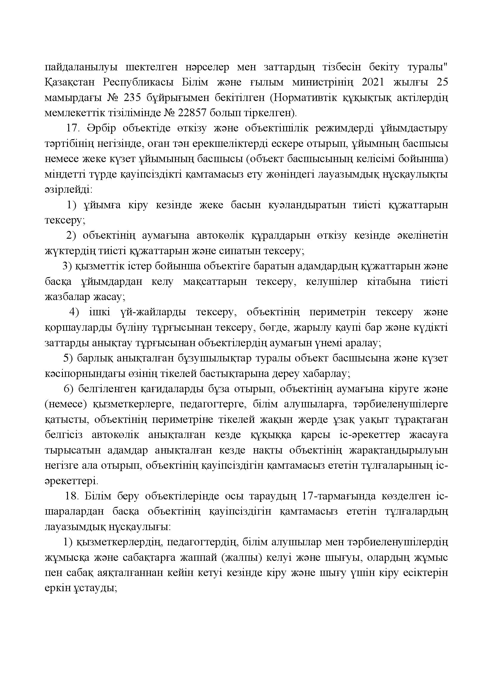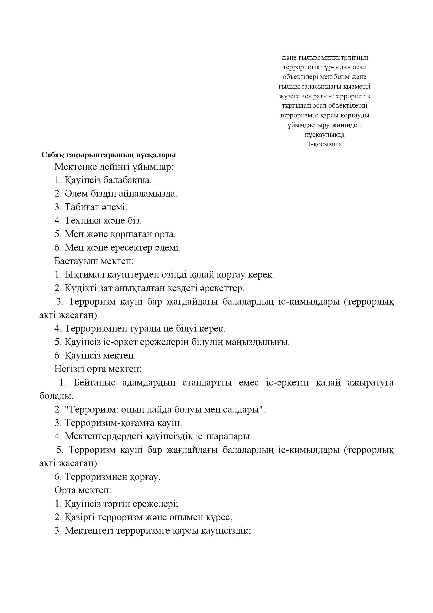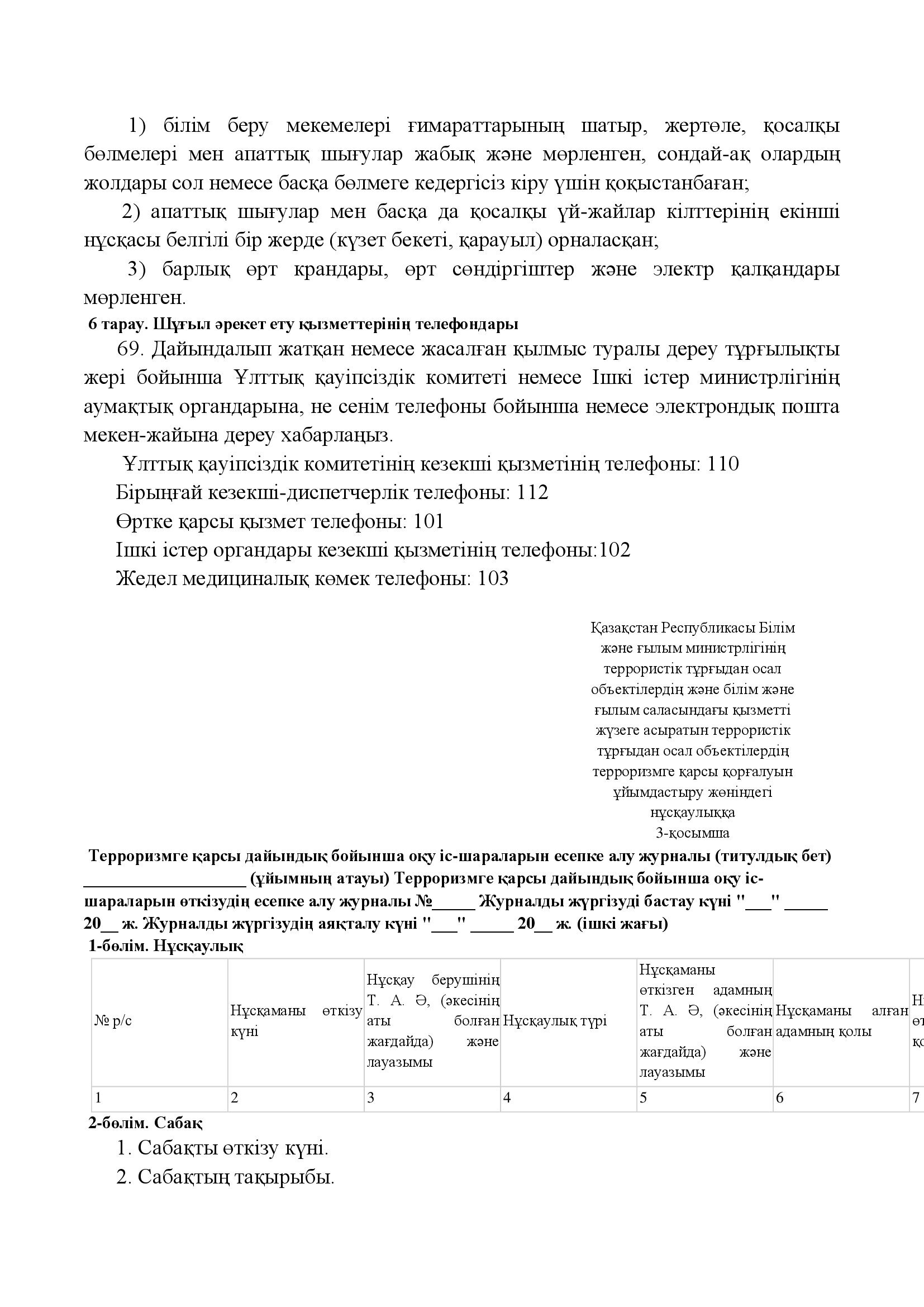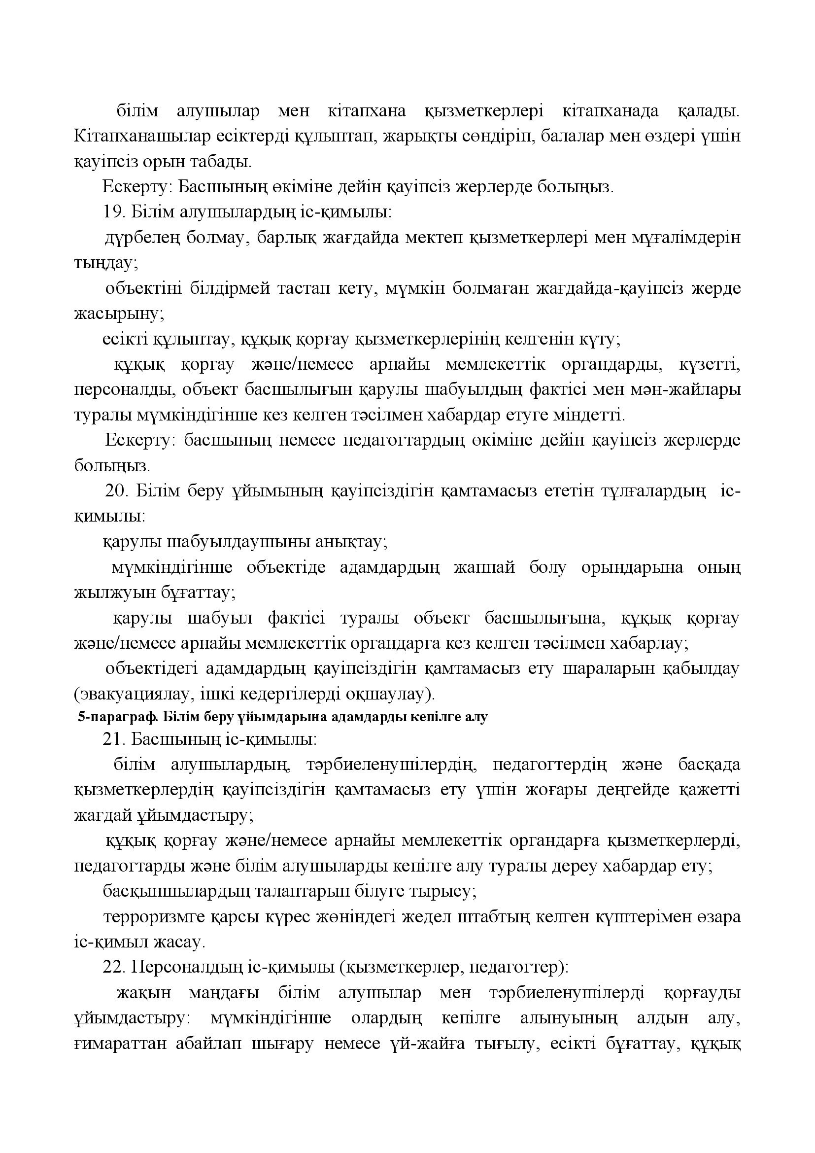 04 наурыз 2024 0 1 2 3 4 5 2022 жылғы 30 наурыздағы № 117 бұйрығы. "Терроризмге қарсы іс-қимыл туралы" -117-bjry_-antiterror_30-03-2022_kaz.pdf [534,66 Kb] (cкачиваний: 0) Посмотреть онлайн файл: -117-bjry_-antiterror_30-03-2022_kaz.pdf