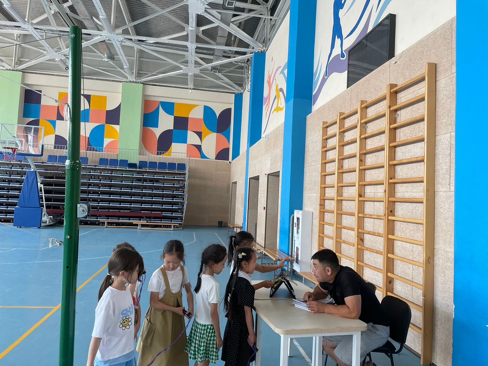 Спорттық сауықтыру лагерьге келген балаларға жаттығулар өткізілді.