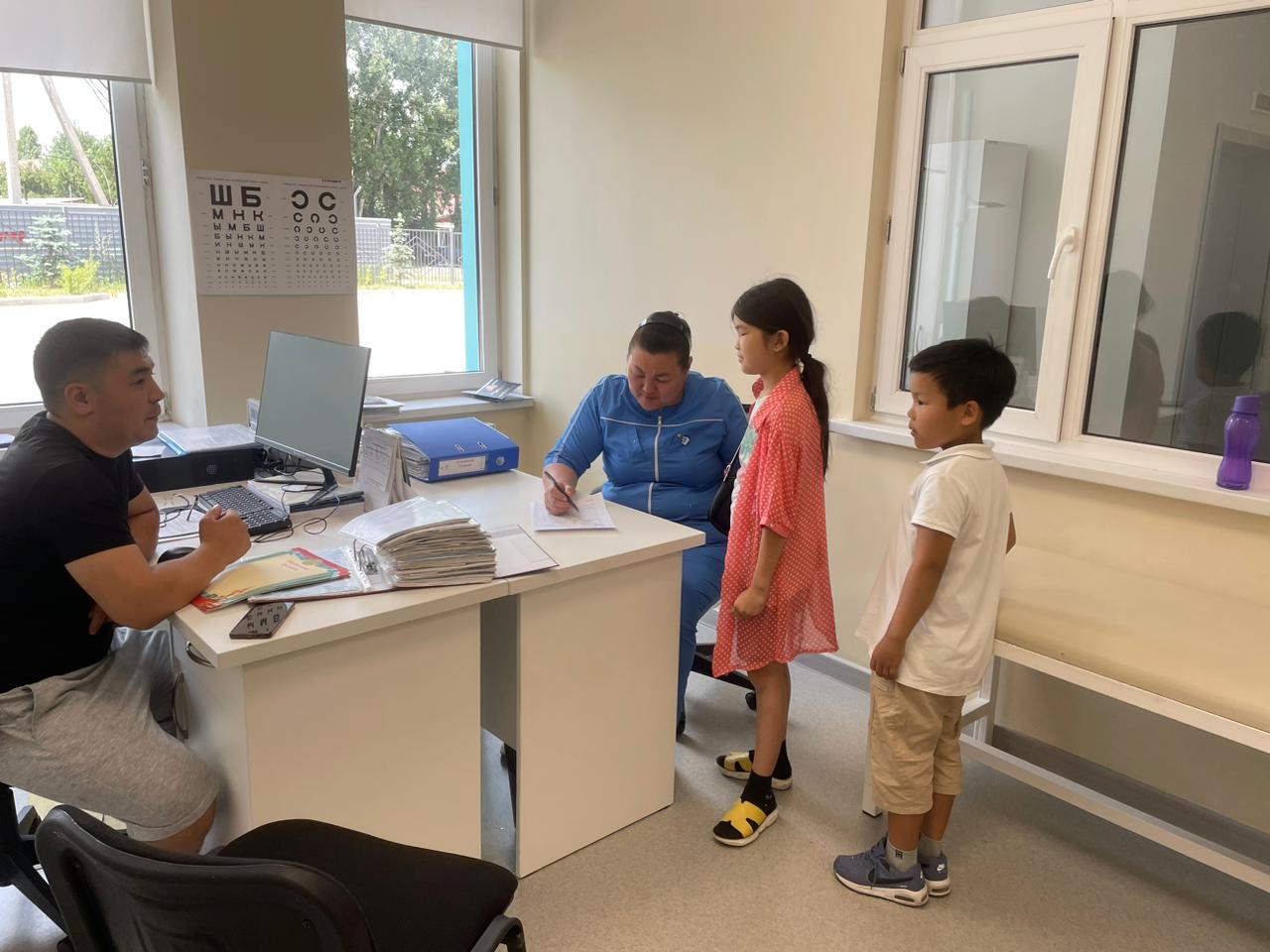 І ауысым 08:30-09:00 балаларды қабылдау уақытында мектеп медбикесі А.Шурегеева балалардың қызуын тексеріп, тазалықтарына мән беріп отырды. Топ жетекшілері денешынықтыру пән мұғалімдері А.Ғабитұлы мен Н.Сабырбек