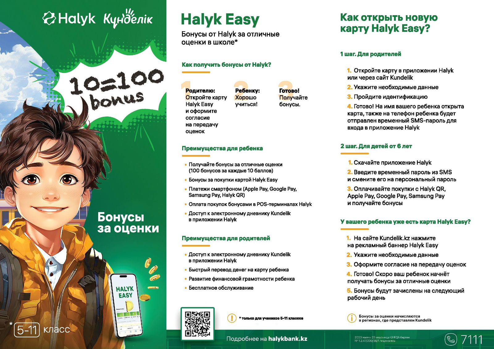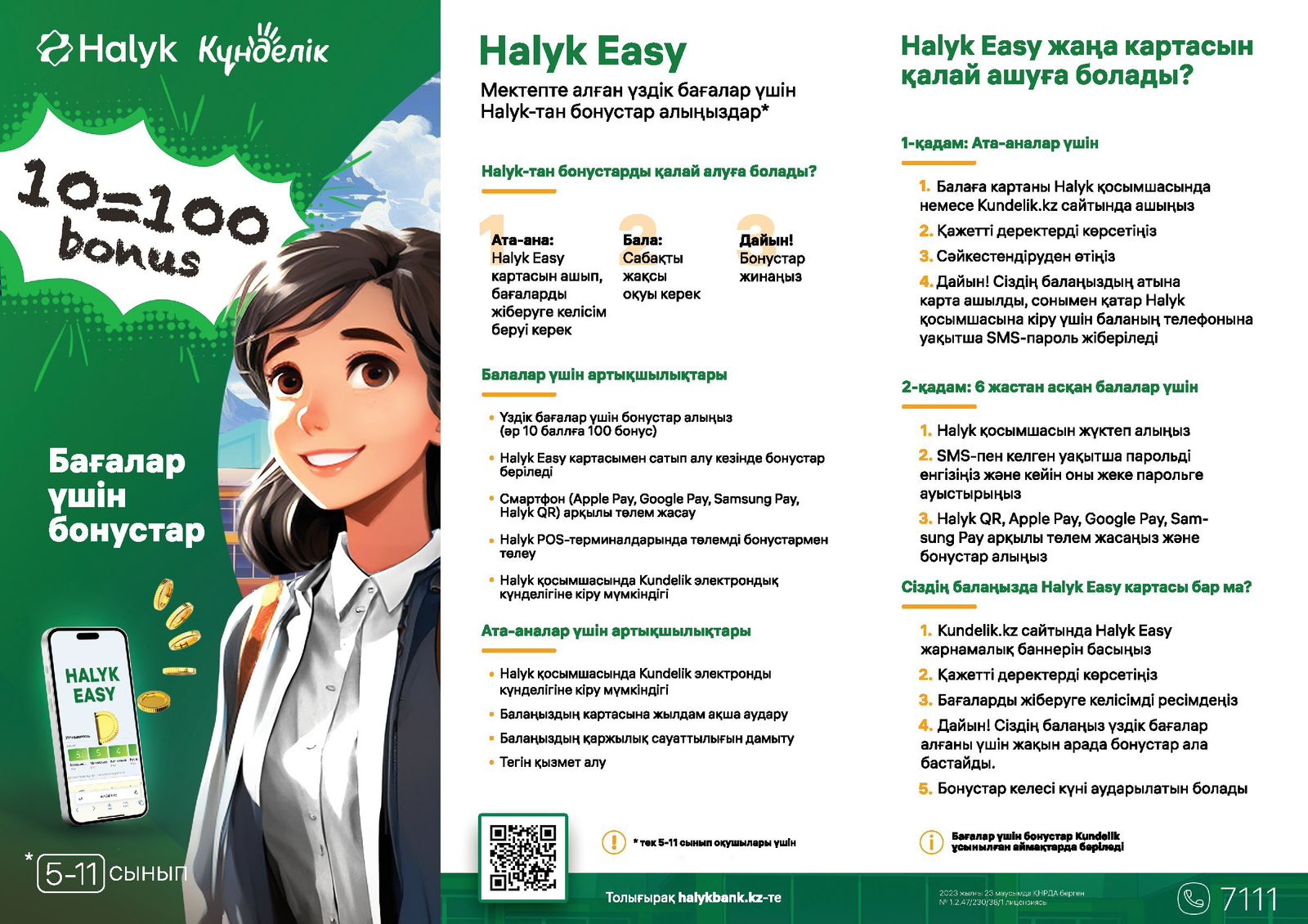 Халық Банкі баланың – 5-11 сынып оқушыларының оқудағы жетістіктері үшін карточкалық шотына Бонустарды түсіріп отырады!!!