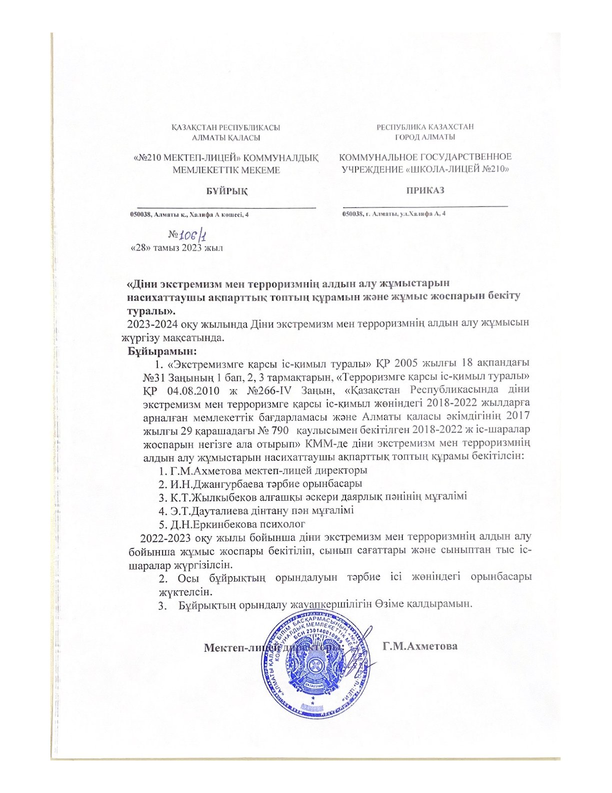 28 тамыз 2023 0 1 2 3 4 5 "Тероризм және экстремизмге қарсы күрес" бойынша атқарылатын іс-шаралардың жұмысы