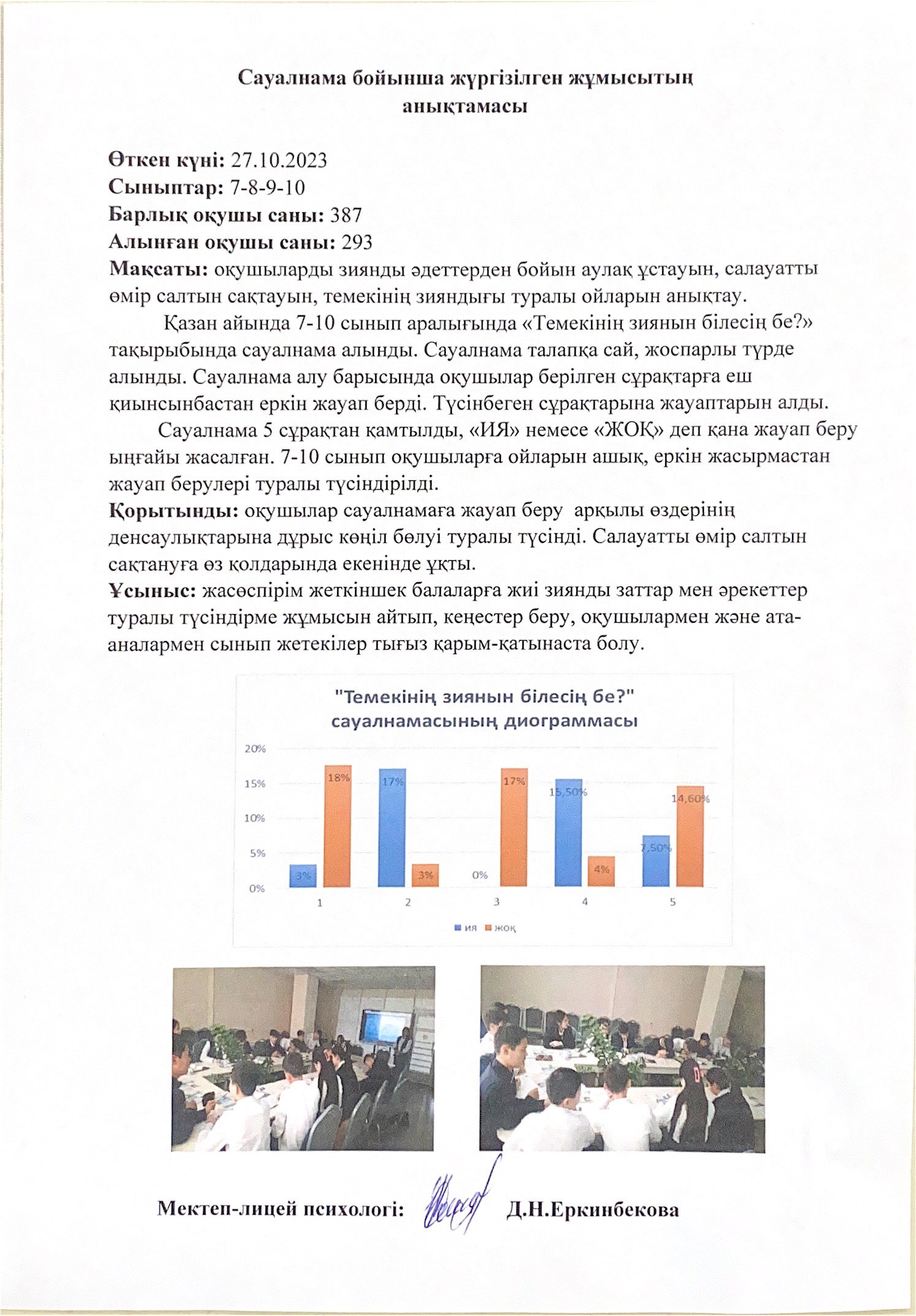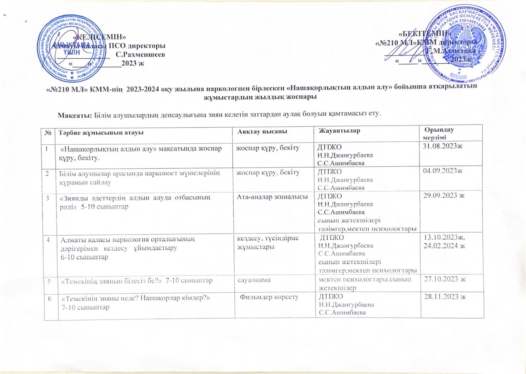 Мектепте наркологиялық бекетті құру » №210 мектеп-лицей