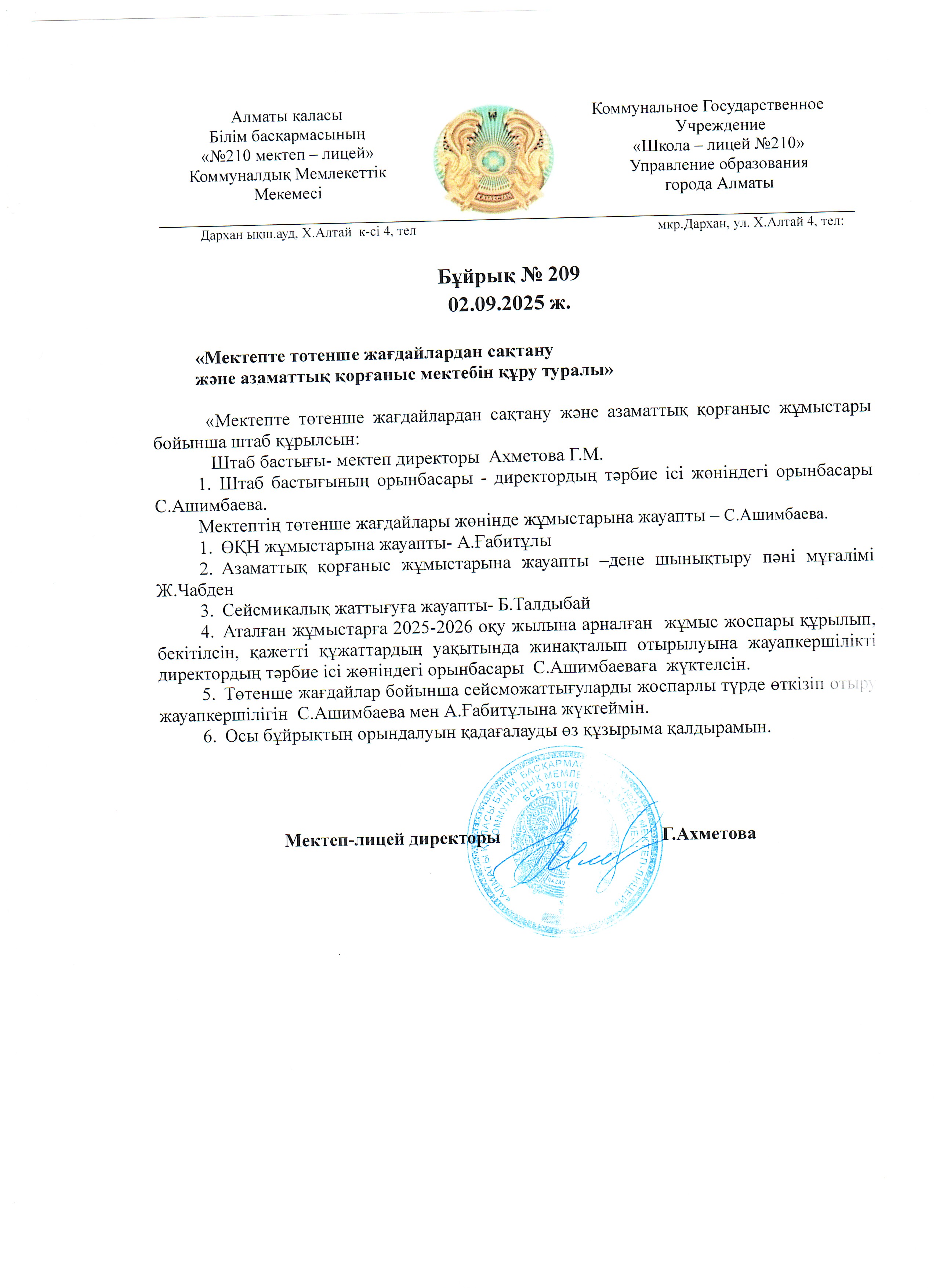 Төтенше жағдайдың алдын алу » №210 мектеп-лицей