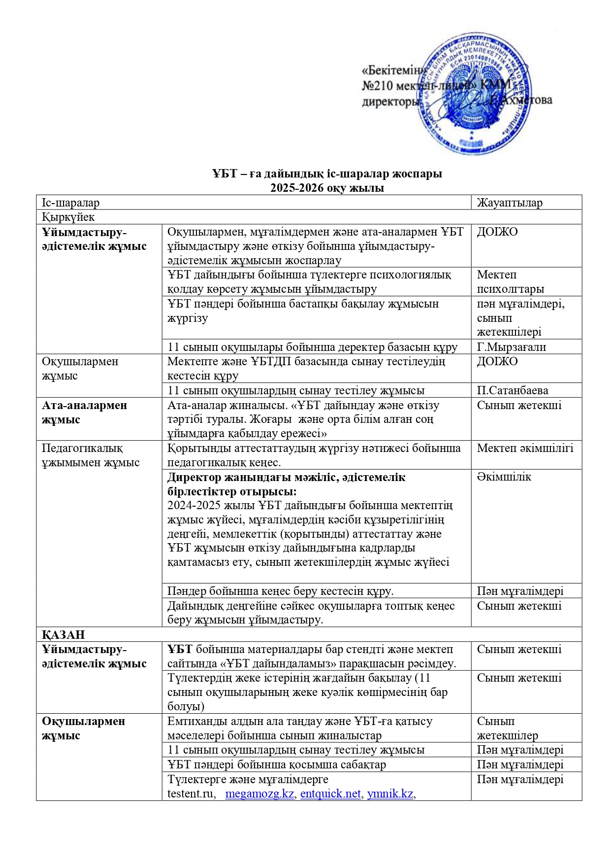 ҰБТ-ға дайындық » №210 мектеп-лицей