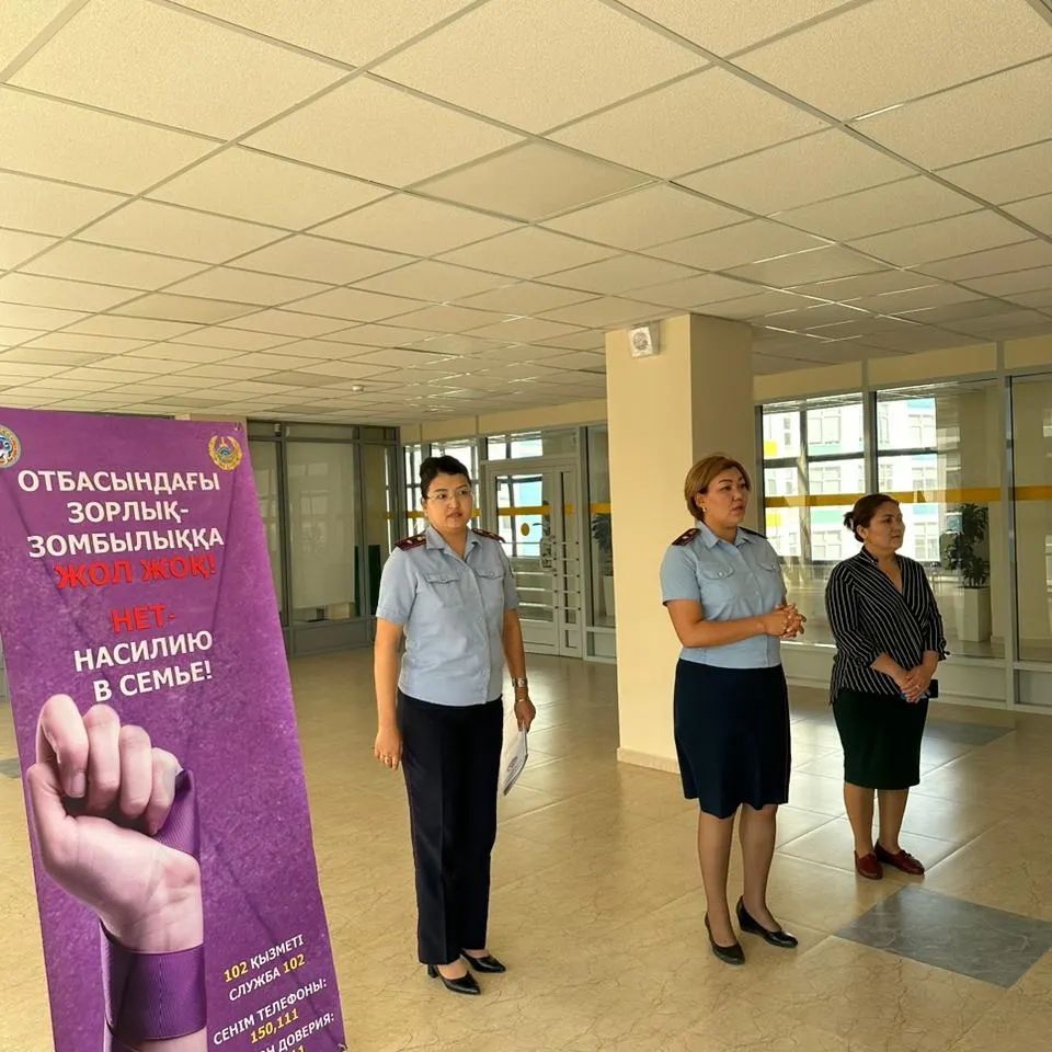 "Зорлық зомбылықсыз отбасы" акциясы аясында кәмелетке толмағандарға қатысты құқық бұзушылықтардың, сондай-ақ отбасында зорлық-зомбылық жасаудың алдын алу мақсатында Алатау ауданының ПБ ЖПҚБ ӘЗЗҚЖТ аға инспекторы полиция майоры М.М.Нурадиловамен бірге мектеп инспекторы А.О.Алиева директордың тәрбие ісі жөніндегі орынбасарлар 8/9 сынып оқушыларымен "Қорқытып алушылық", "Тұрмыстық зорлық-зомбылық", "Ерте жүктілік" тақырыбында дәрістер өткізді. Жасөспірімдерге ақпараттық буклеттер таратылды.