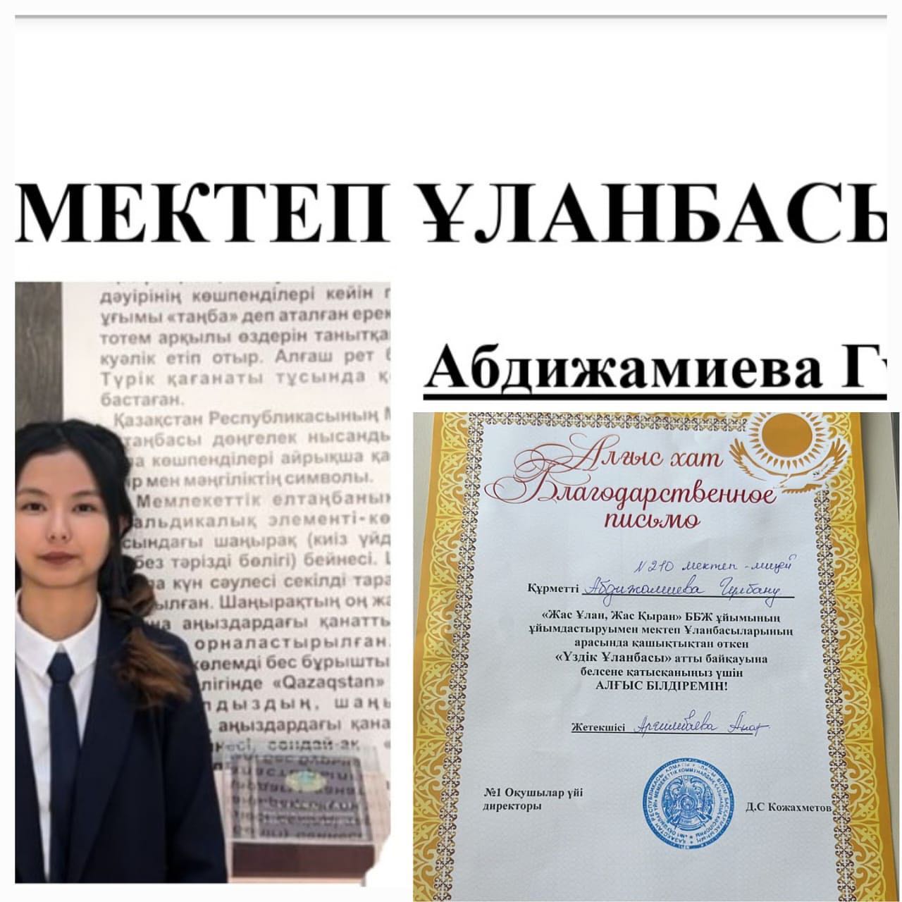 27 сәуір 2023 0 1 2 3 4 5 Жас Ұлан","Жас Қыран "Жас Ұлан","Жас Қыран" ББЖ ұйымының ұйымдастыруымен Мектеп Ұланбасыларының арасында "Үздік Ұланбасы" байқауы өтті.Қашықтықтан өткен видеролик байқауына мектебіміздің Ұланбасы Абдижамиева Гүлбану қатысып АЛҒЫС ХАТ пен марапатталды.Құттықтаймыз!