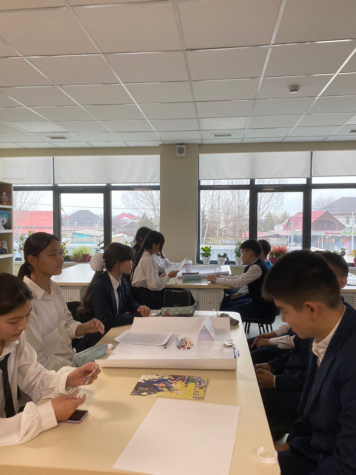 05 желтоқсан 2023 0 1 2 3 4 5 "Оқуға құштар мектеп" жобасы Оқыған кітаптары бойынша сұхбаттасып,әңгімені жіктеп,талдай отырып кітап оқуға ынталандыру мақсатында "Оқуға құштар мектеп" жобасы аясында 7-ші сынып оқушыларымен интеллектуалды ойын ретінде іс-шара ұйымдастырылды.