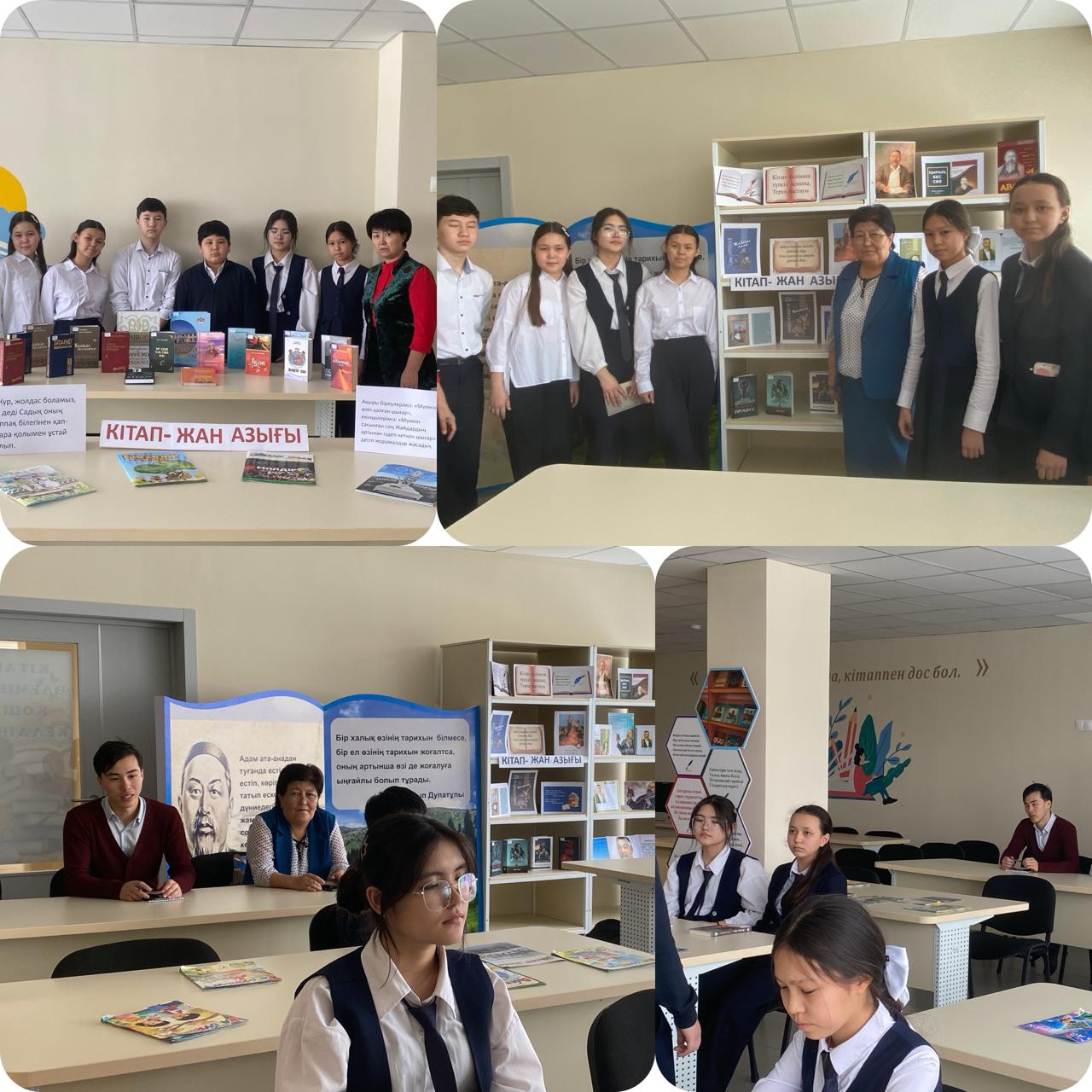 «Оқуға құштар мектеп» жобасы аясында оқушыларды кітап пен кітап оқудың имиджін арттыру, қазіргі жастар бойында кітап оқуға деген сүйіспеншілікті тәрбиелеу, оқырман талғамы мен қызығушылығын қалыптастыру және дамытуға ықпал ете отырып ынталандыру мақсатында «Кітап-жан азығы» тақырыбында қазақ ақын жазушыларының шығармаларын оқып,талдау үшін 8-сынып оқушыларымен дөңгелек үстел ұйымдастырылды. Оқушылар оқыған С.Мұратбековтың «Жабайы алма,Жусан иісі», Қ.Қайсеновтың «Жау тылындағы бала»,Б.Момышұлының «Ұшқан ұя» шығармаларын оқығаннан алған әсерін,не мақсатпен оқығанын, түйген ойларын барынша белсенділік танытып талдап,ортаға салды. Шараға қатысып куәгер болған қазақ тілі мен әдебиет пәні мұғалімдері Г.Ч.Сагымбаева,Е.Е.Жақыпбай көркем әдебиеттің үш пайдалы қасиеті- тіл байлығы, рухани тоқтығы,есте сақтау қабілетінде екендігін айтып өтті.