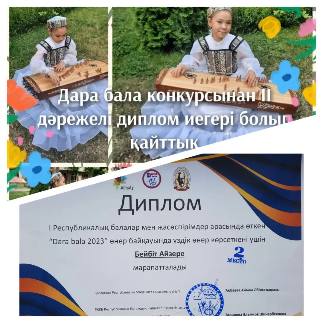04 мамыр 2023 0 1 2 3 4 5 Dara bala - 2023 Республикалық балалар мен жасөспірімдер арасында өткен "Dara bala - 2023" байқауында үздік өнер көрсеткені үшін ІІ дәрежелі дипломмен 5 сынып оқушысы Бейбіт Айзере марапатталды. Құттықтаймыз!!!
