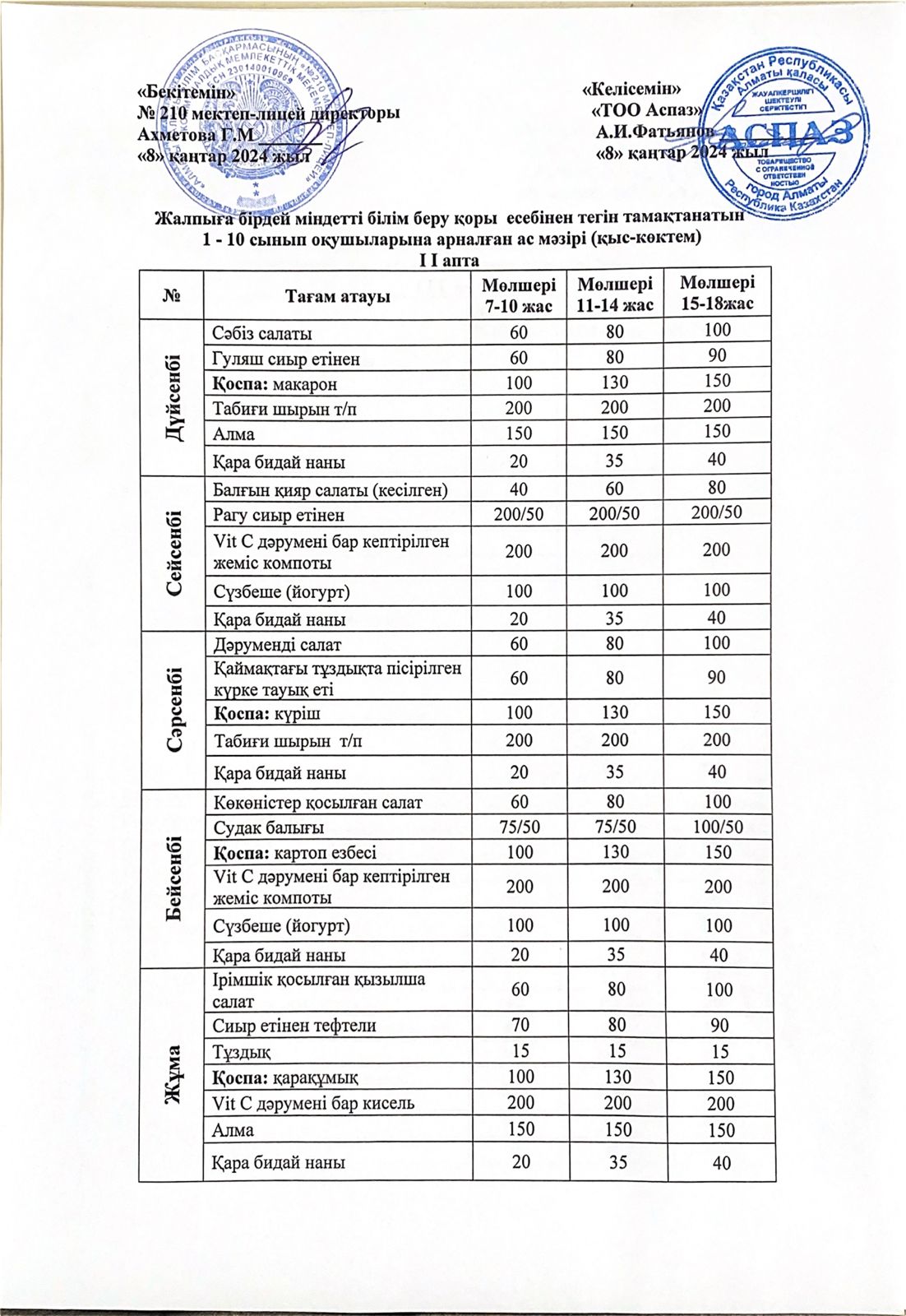08 мамыр 2023 Ас Мәзірі 2 Апта