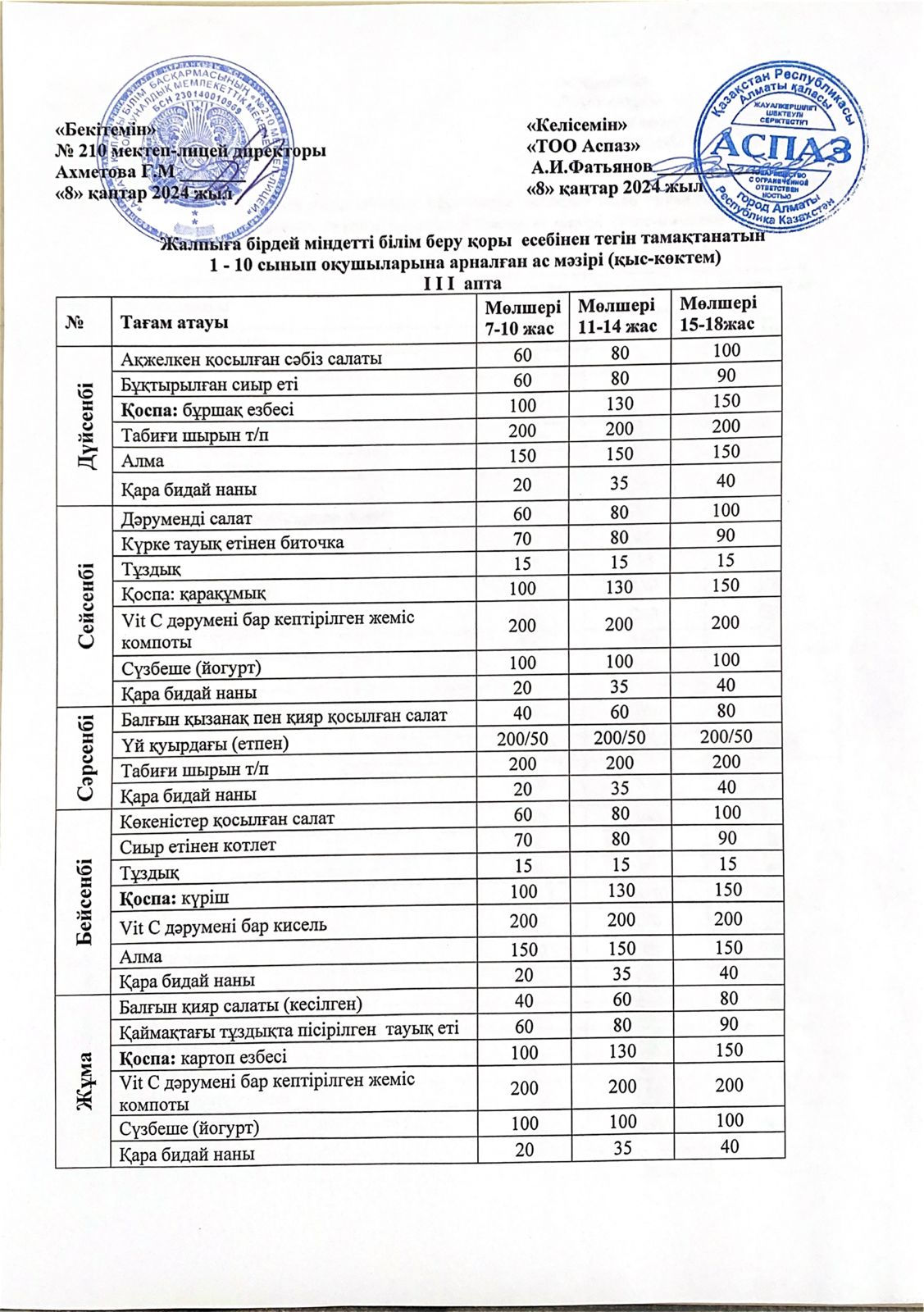 3-АПТА АС МӘЗІРІ » №210 мектеп-лицей
