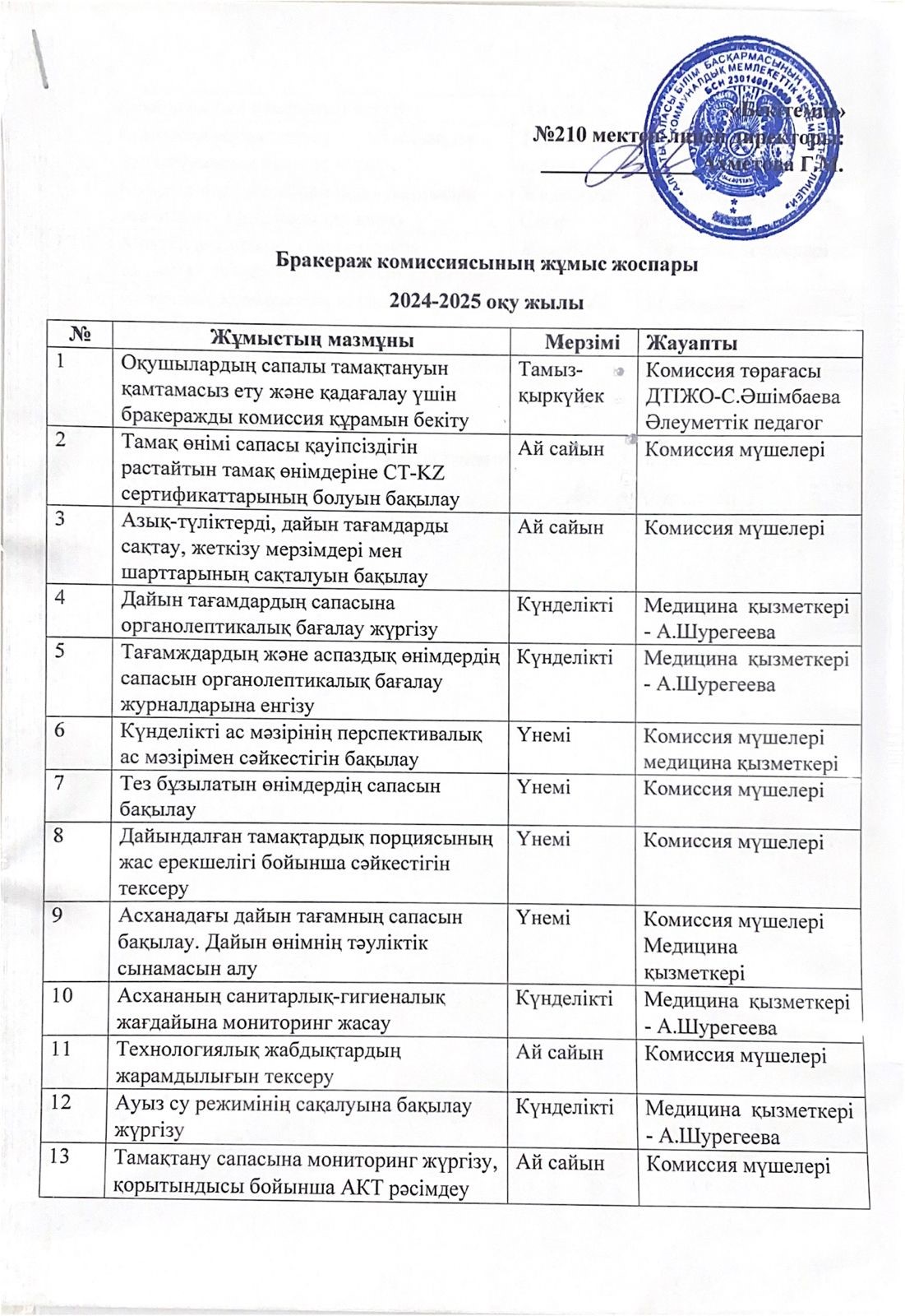 Бракераждық комиссия жоспары » №210 мектеп-лицей