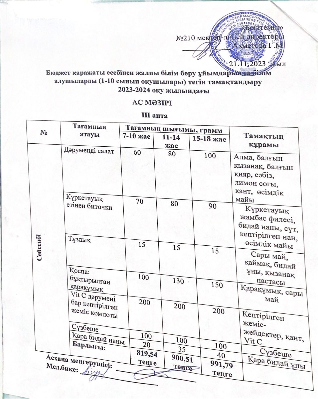 ас мәзірі 21.11.2023 » №210 мектеп-лицей